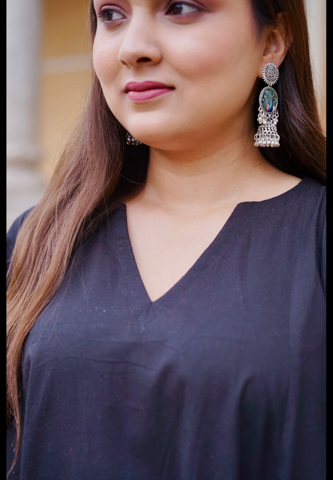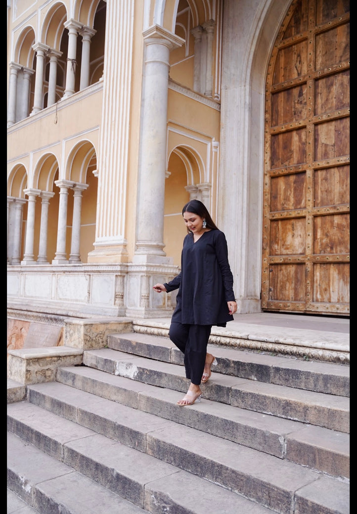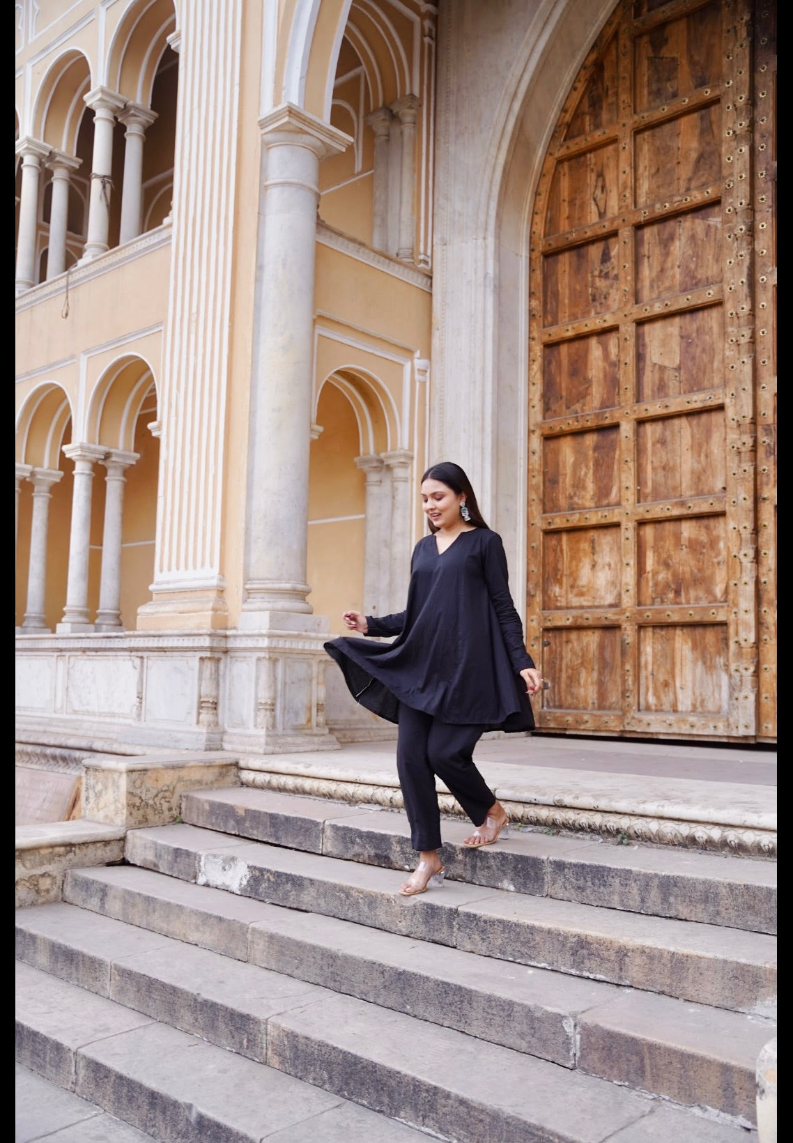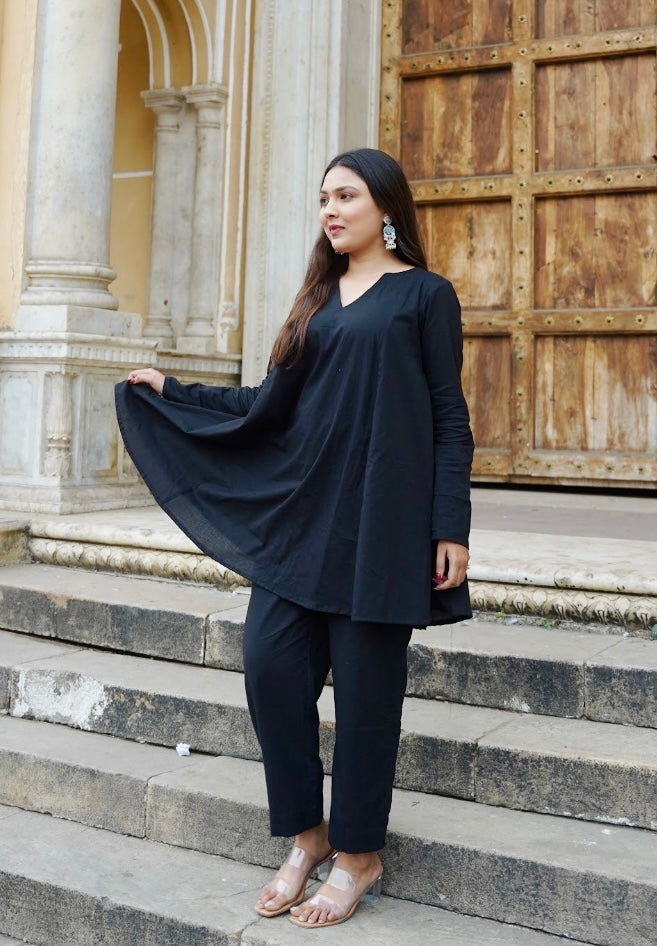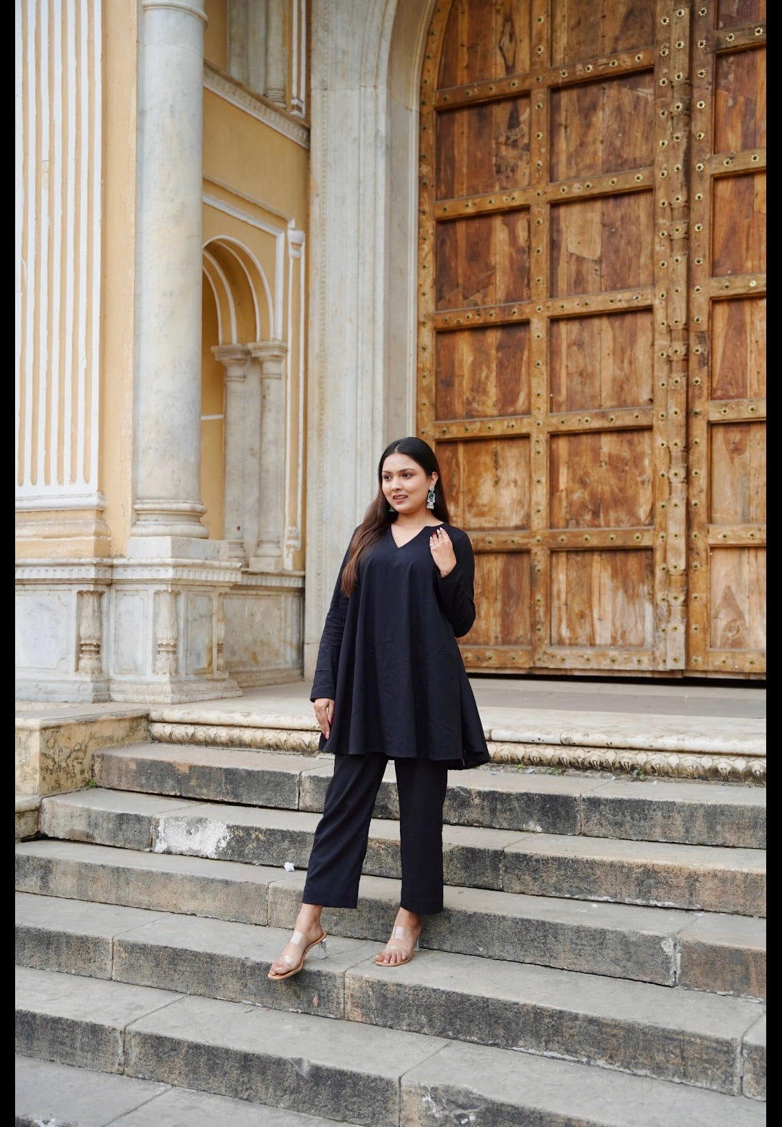 Black corset-style short frock with pants, bold and sophisticated, crafted for effortless evening elegance.
